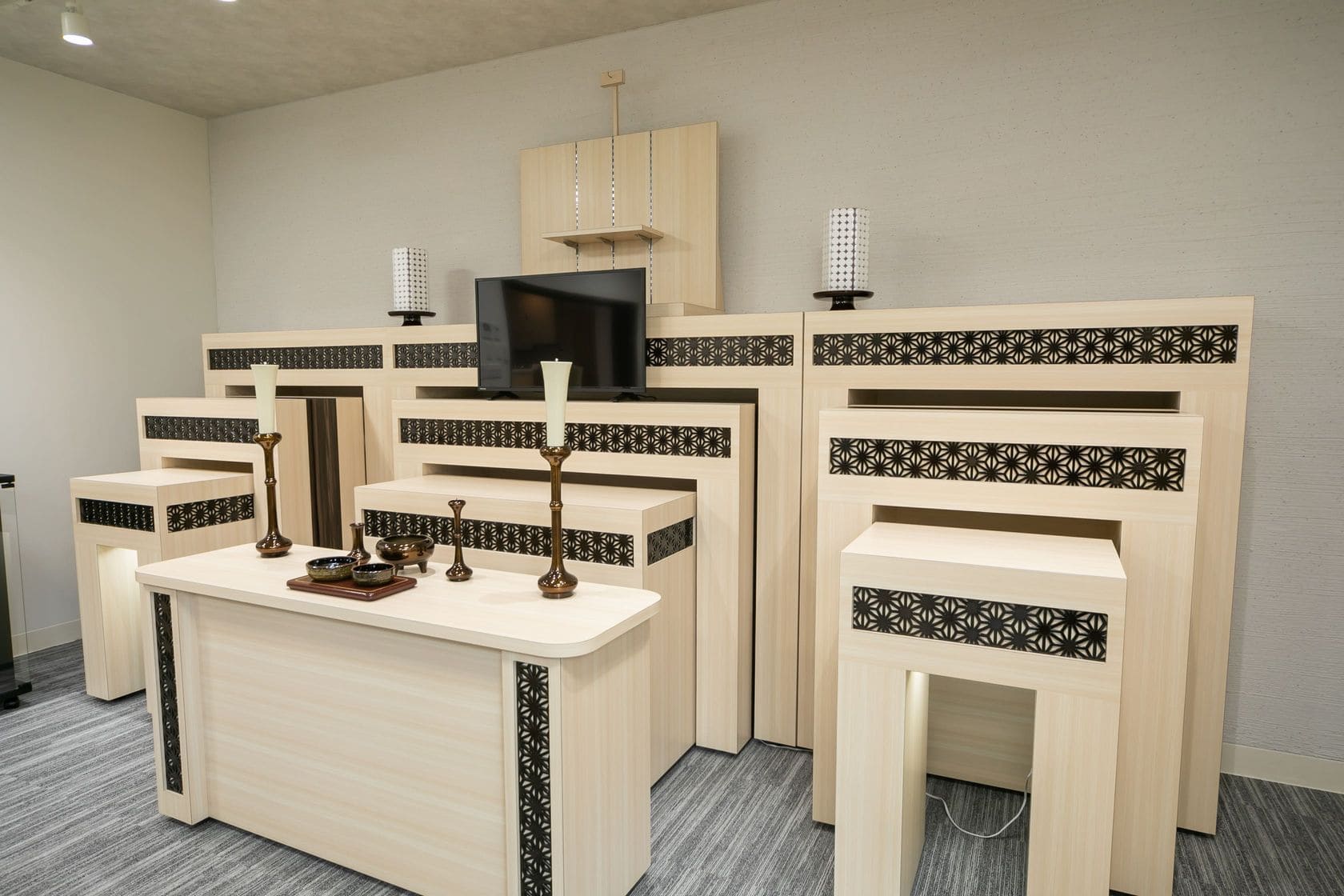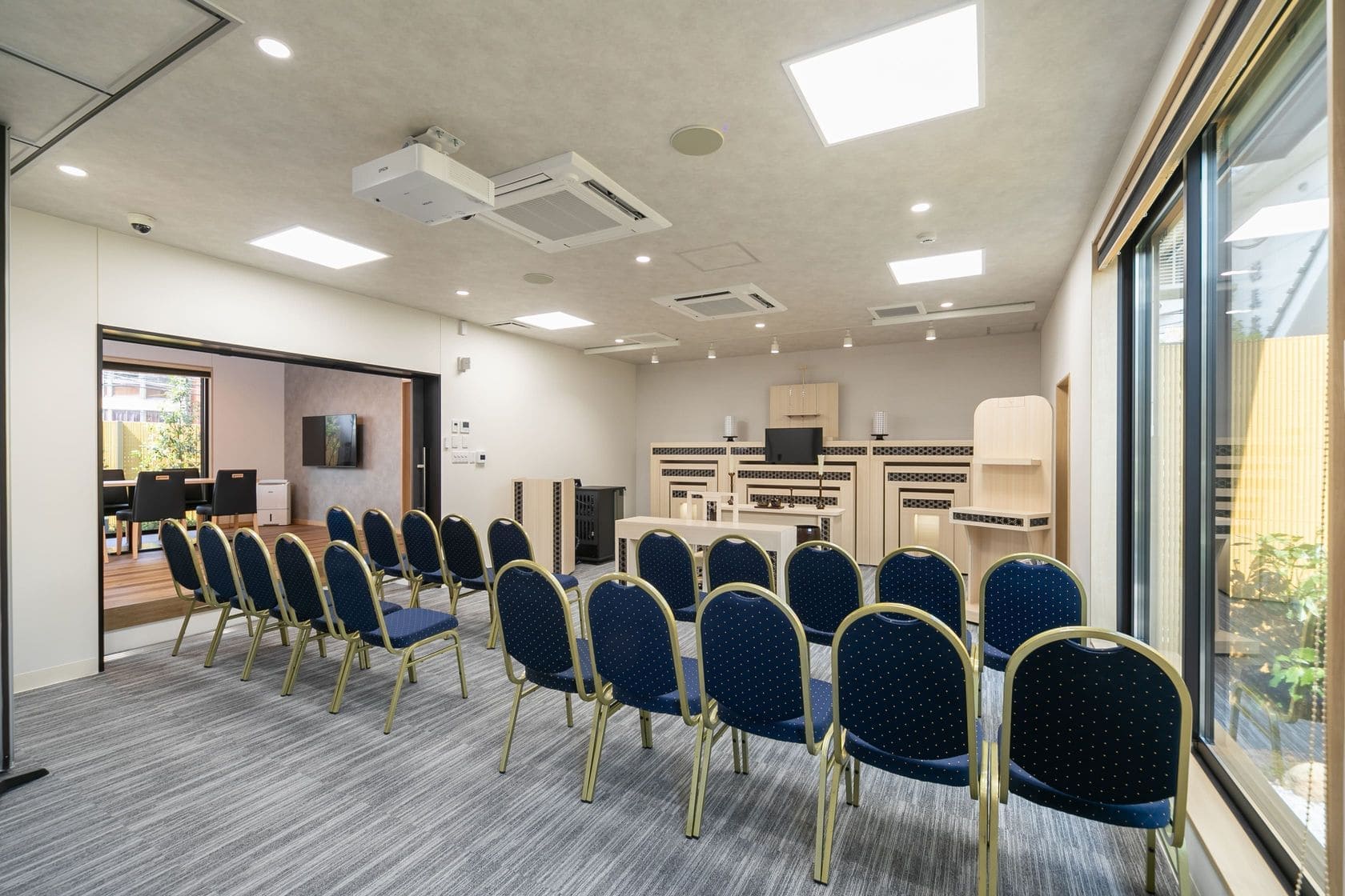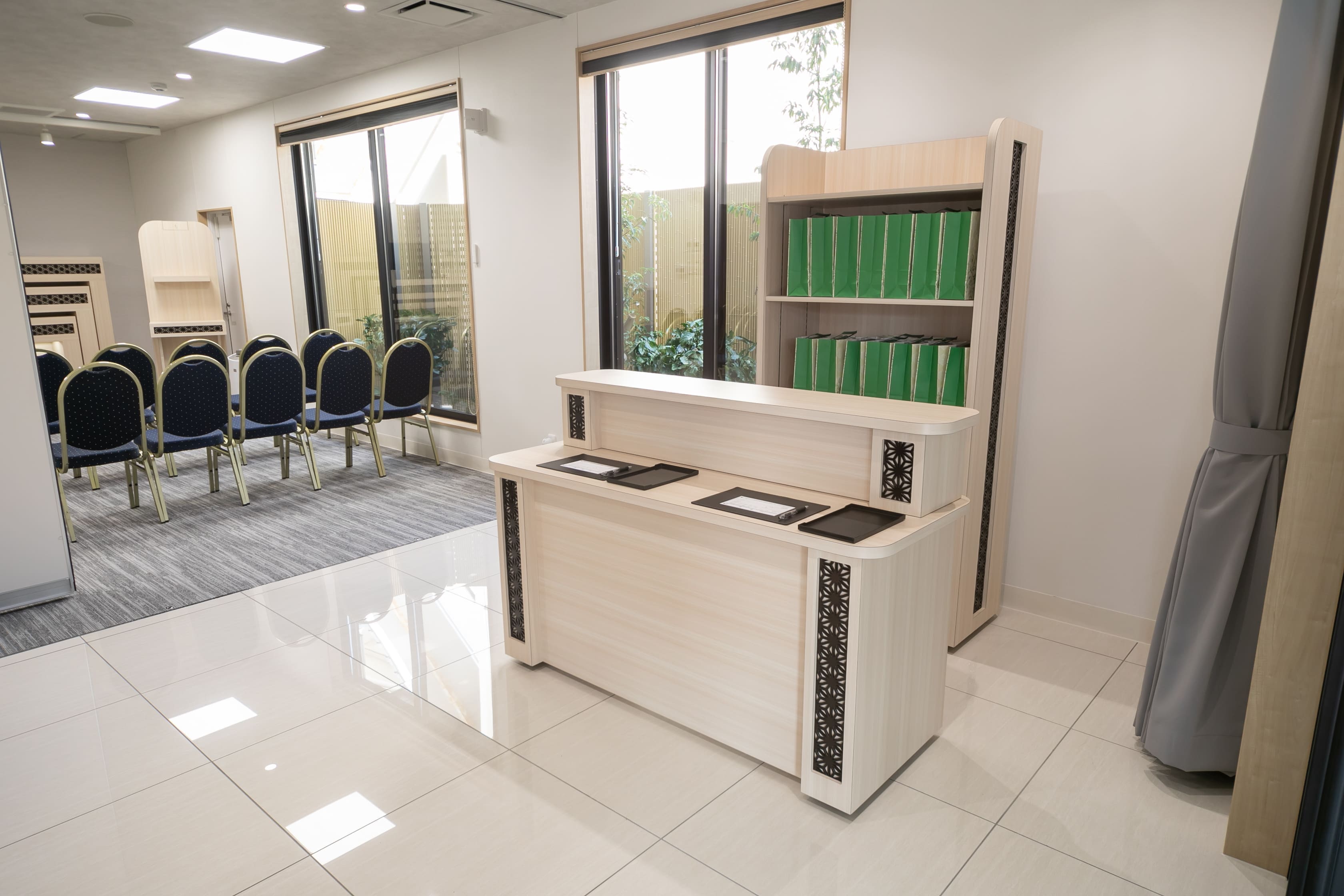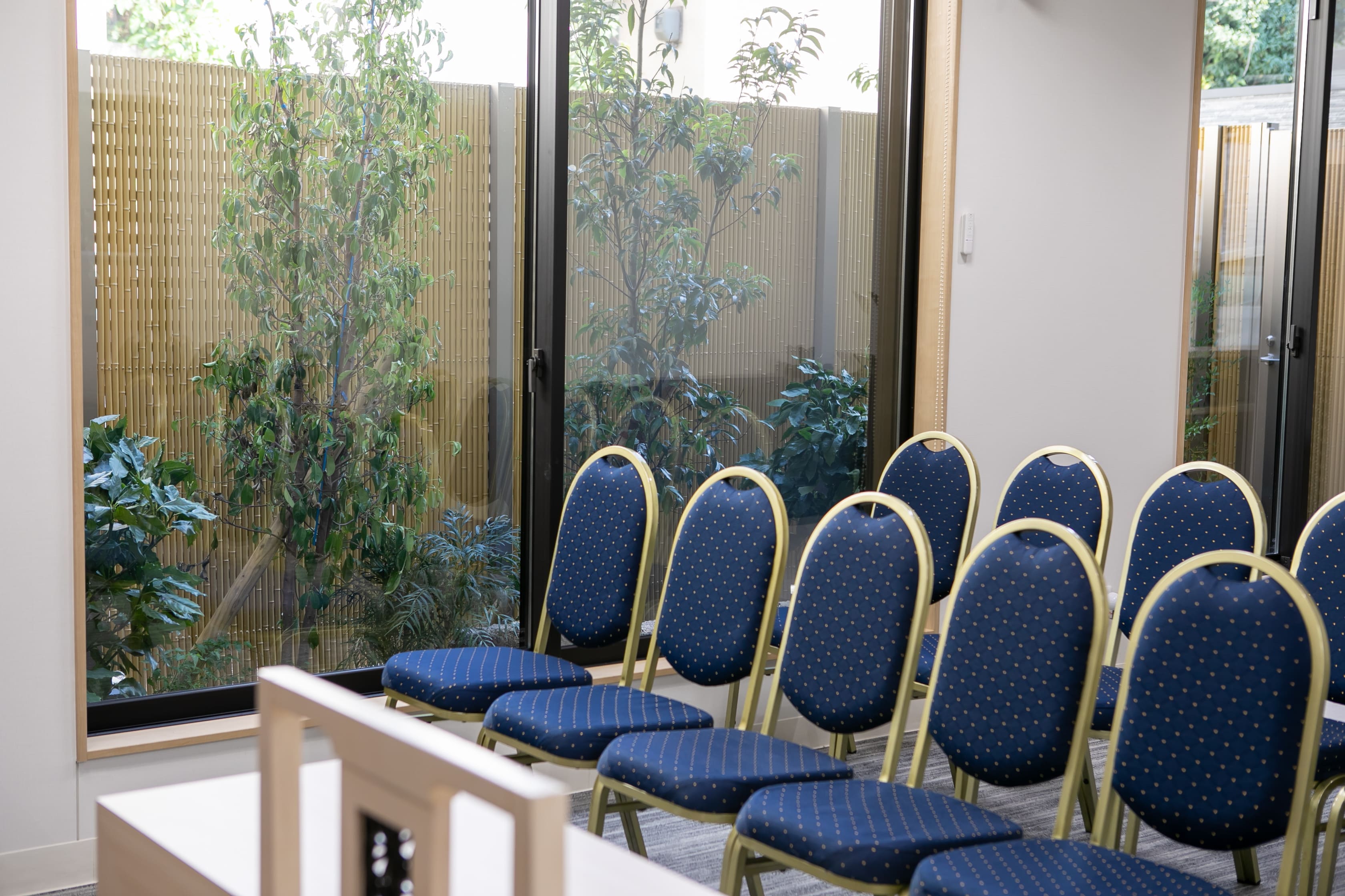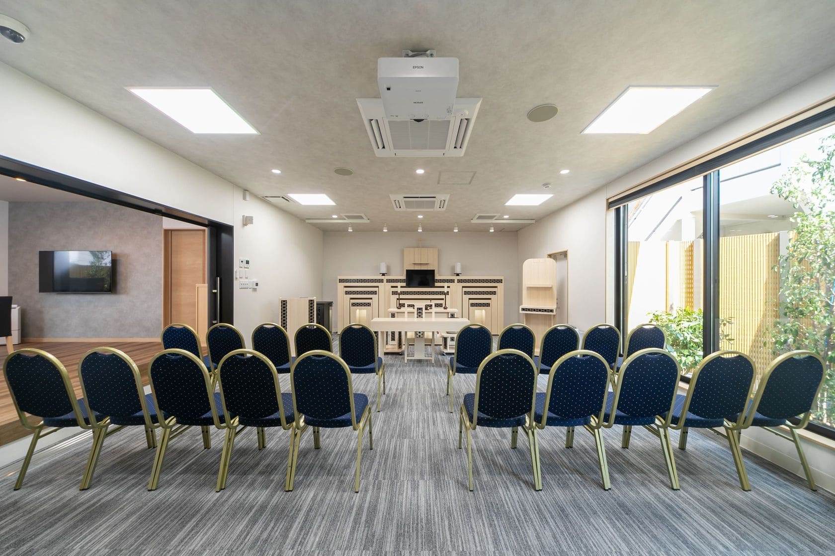 家族葬(一日葬)やごく親しい方々だけのご葬儀に最適なホールです。祭壇のクオリティは大ホールと同等のものをご用意しています。少人数でありながらも、感動的な演出と格式を兼ね備えたセレモニーがかないます。