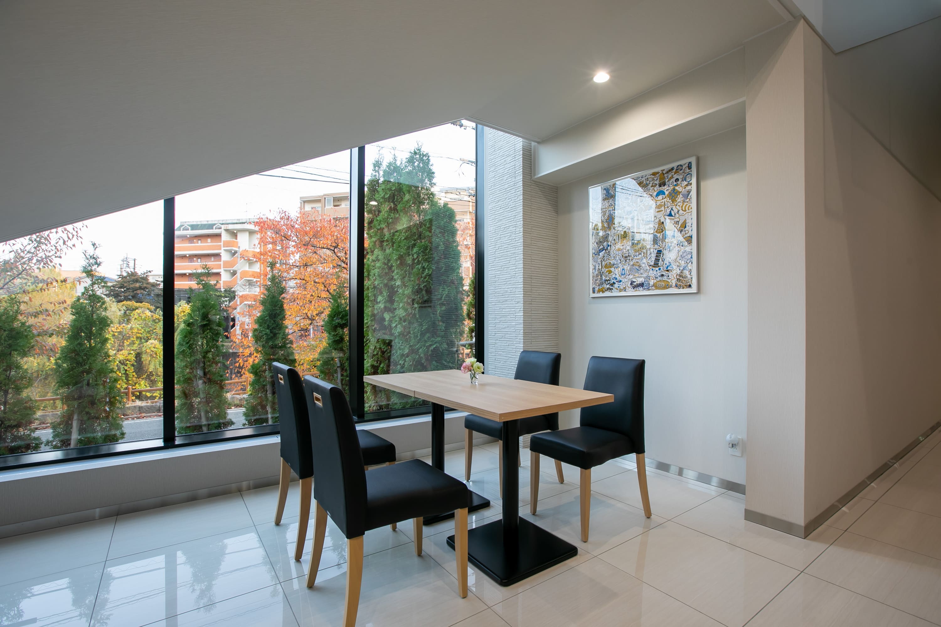 しらゆり会館でもっとも新しい、まさに葬儀の新時代を体現したホールです。アクセス良好の平尾エリアにありながら、周囲の景観は緑に囲まれ、日当たりもよく開放感は抜群です。最新のホールにふさわしく、高級感にあふれたシックな空間で、最先端の設備を整えています。プロジェクションマッピングや、職人によるできたての料理を提供するライブクッキングで皆さまをおもてなし致します。