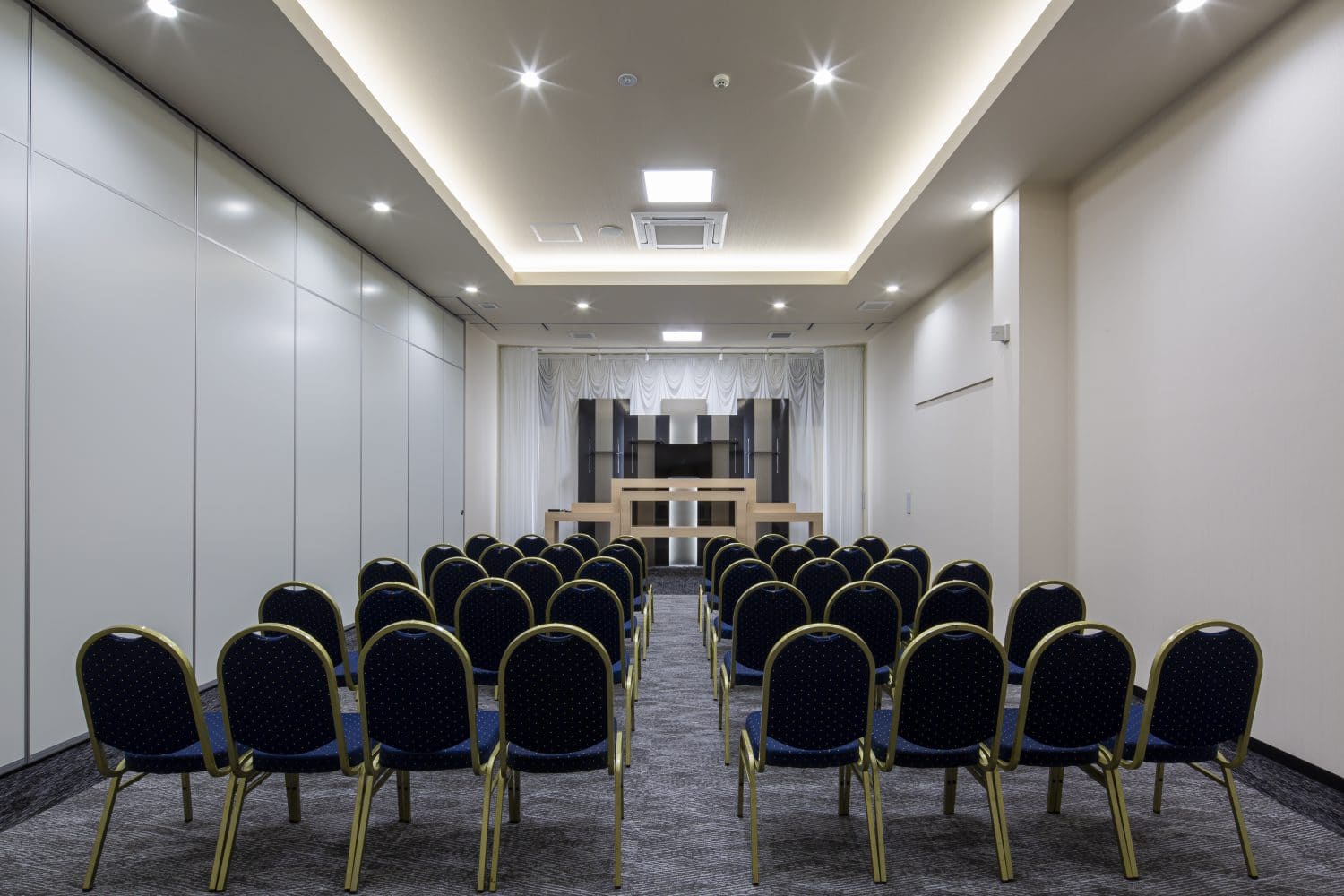 家族葬(一日葬)やごく親しい方々だけのご葬儀に最適なホールです。祭壇のクオリティは大ホールと同等のものをご用意しています。少人数でありながらも、感動的な演出と格式を兼ね備えたセレモニーがかないます。