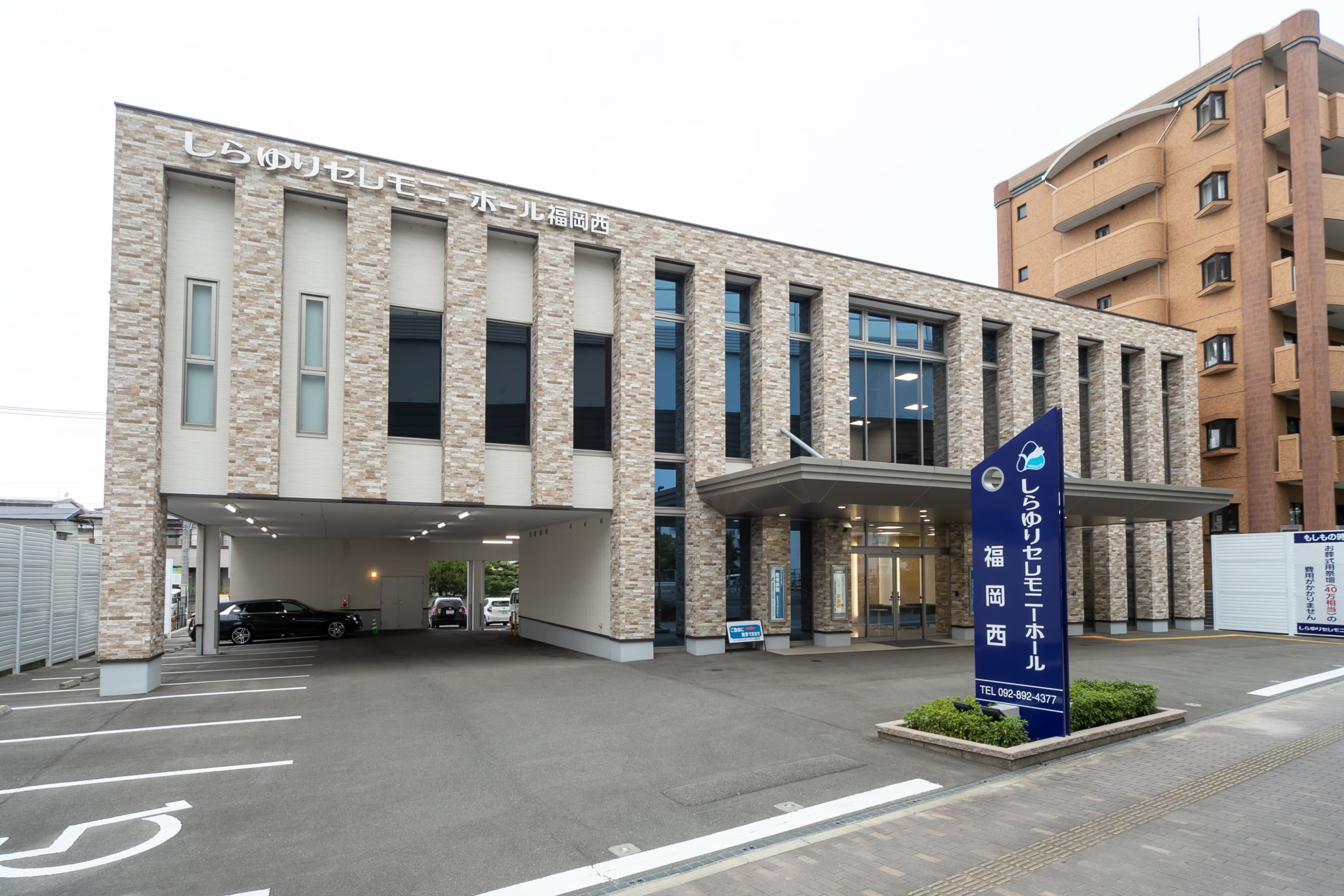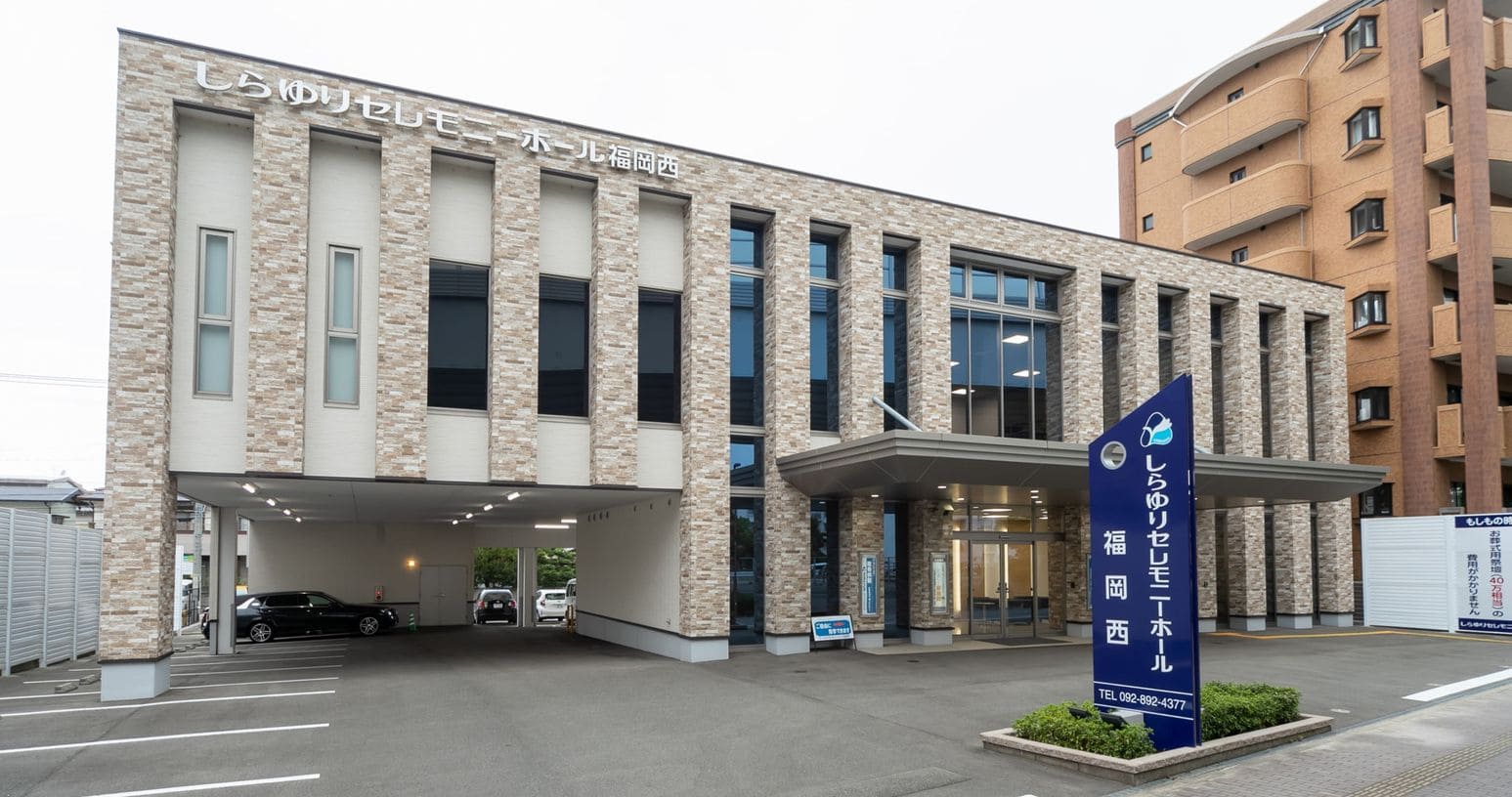 最新の設備とホテルライクなおもてなしを備えた、しらゆりセレモニーホール福岡西。地下鉄空港線「姪浜駅」から車で約5分、愛宕通り沿いの大規模ホールのため、前を通ったことがあるという方も多いと思います。高級感がただよう外観やガラス張りのロビー、ラグジュアリーな内装デザインで、故人との最期の時間を演出します。