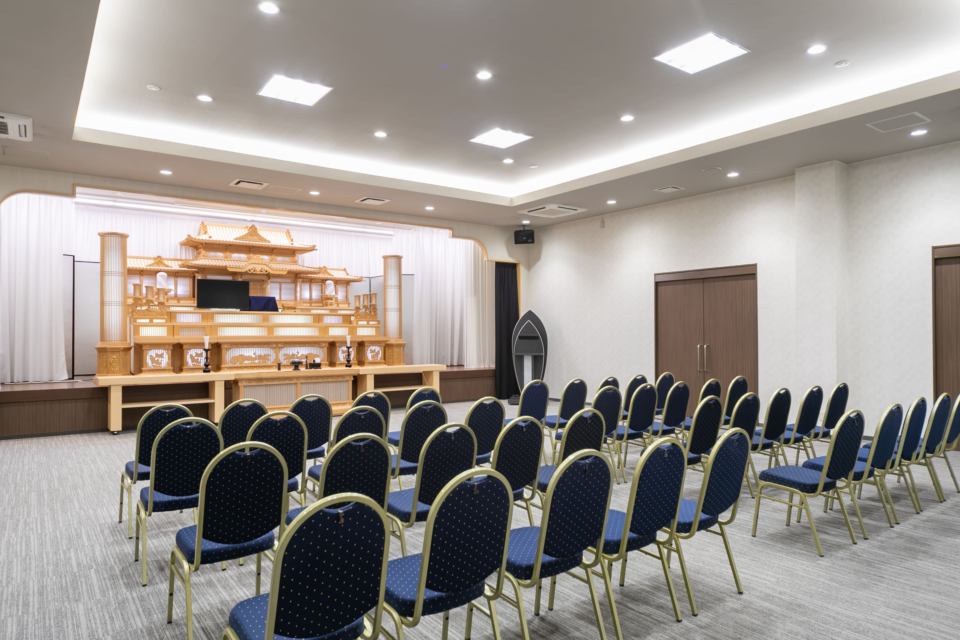 家族葬(一日葬)やごく親しい方々だけのご葬儀に最適なホールです。祭壇のクオリティは大ホールと同等のものをご用意しています。少人数でありながらも、感動的な演出と格式を兼ね備えたセレモニーがかないます。