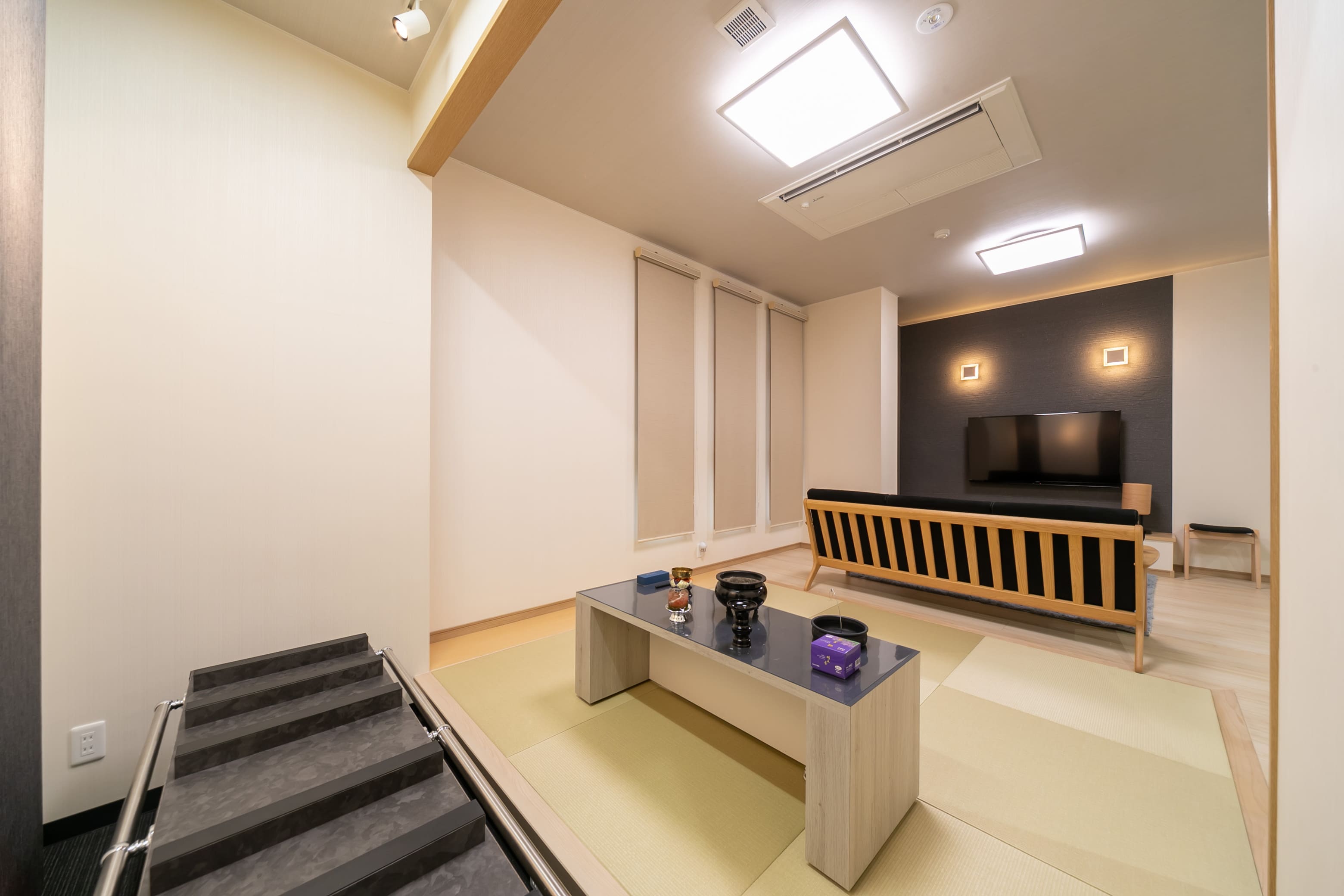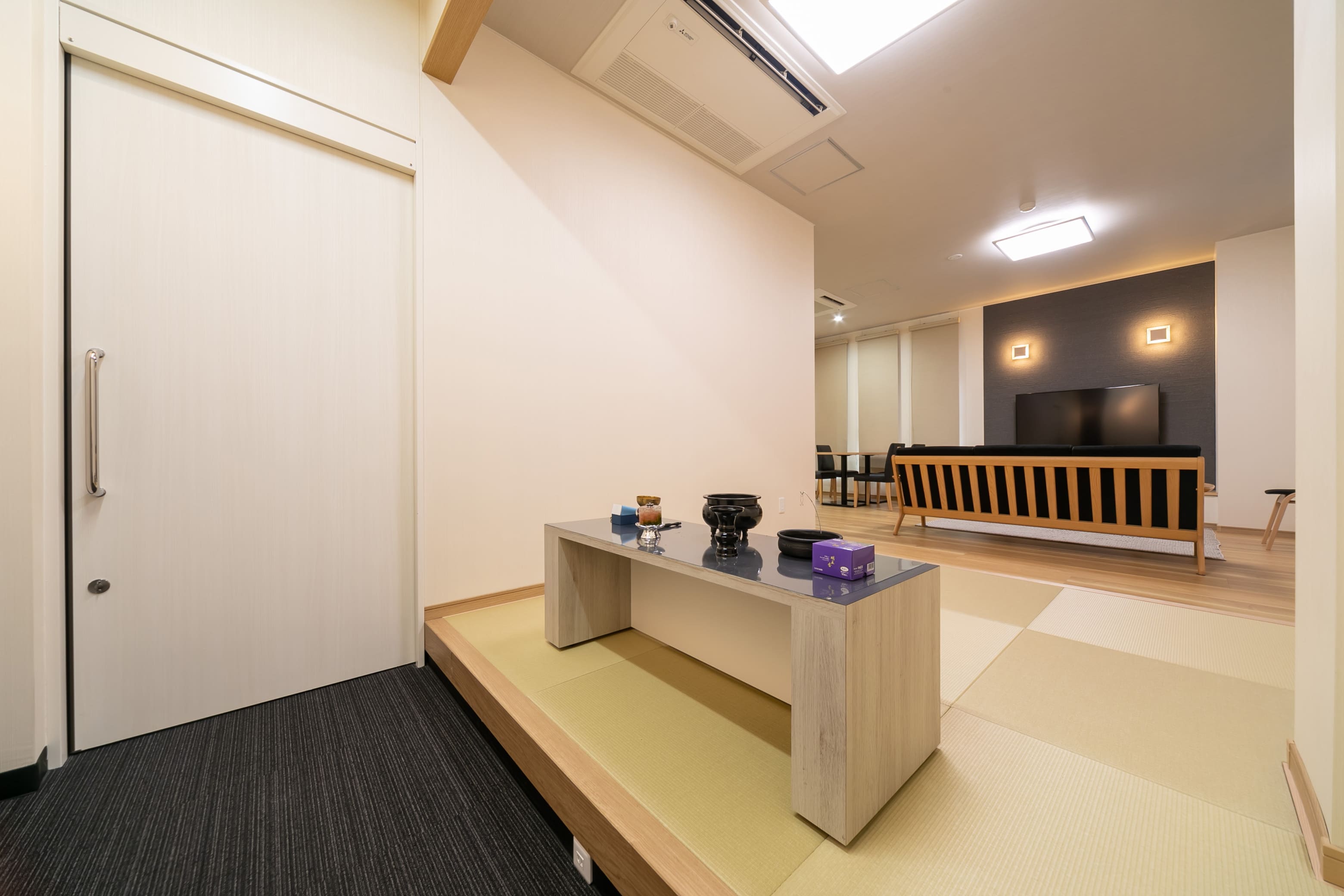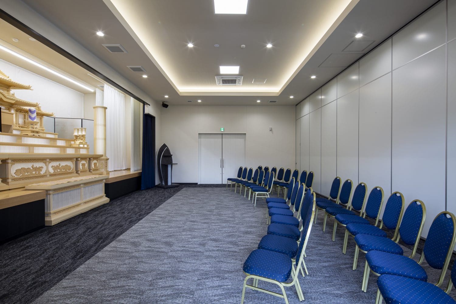 家族葬(一日葬)やごく親しい方々だけのご葬儀に最適なホールです。祭壇のクオリティは大ホールと同等のものをご用意しています。少人数でありながらも、感動的な演出と格式を兼ね備えたセレモニーがかないます。