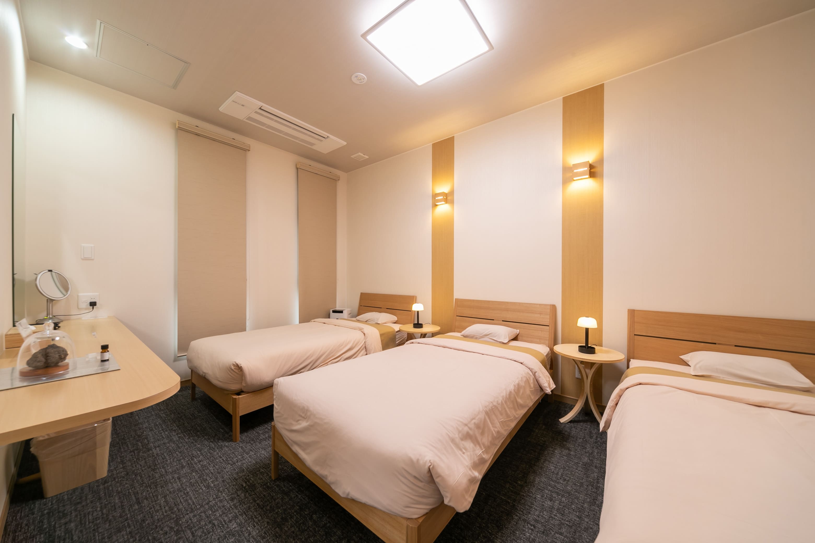 親族の皆さまに心安らかに過ごしていただけるよう配慮した親族控室。季節を問わず快適な室温を保つ床暖房に、ジェットバスやシステムキッチンも完備。家具・家電にいたるまで快適さを追求したラグジュアリーな空間です。