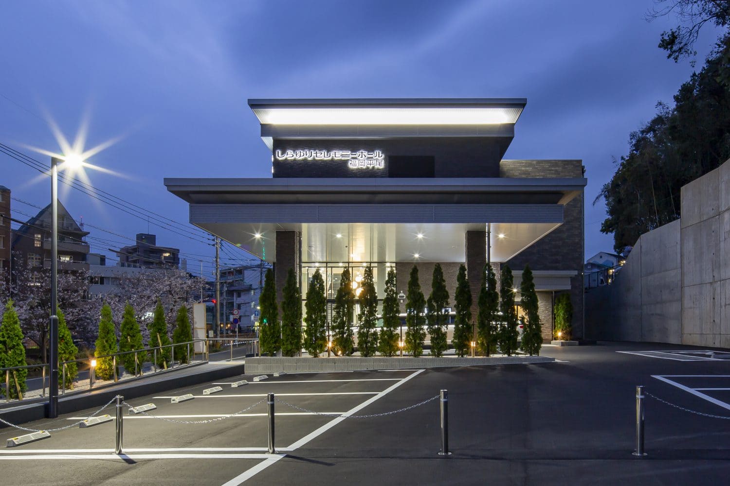 令和2年3月に閑静な平尾エリアに誕生した新設のホール。プロジェクションマッピングやライブクッキングなど、最新の設備とサービスで華やかなお見送りがかないます。控室もホテルクオリティの空間で、心置きなく故人との最期の時間を過ごせます。さらに、しらゆり会館オリジナルの「OKURI BAKO(贈り箱)at Plat.i」も併設しており、ご供養の相談にも対応します。