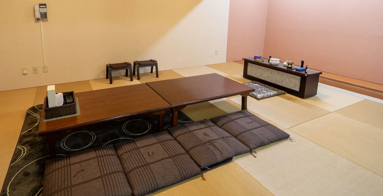 控室は老若男女がくつろげる和室の大広間とベッドルーム。会食室も直結しており、食事の際に移動の負担がありません。水回りへの動線も最小限で段差がない設計のため、年配の方や車いすの方の急な宿泊も安心して過ごせます。
