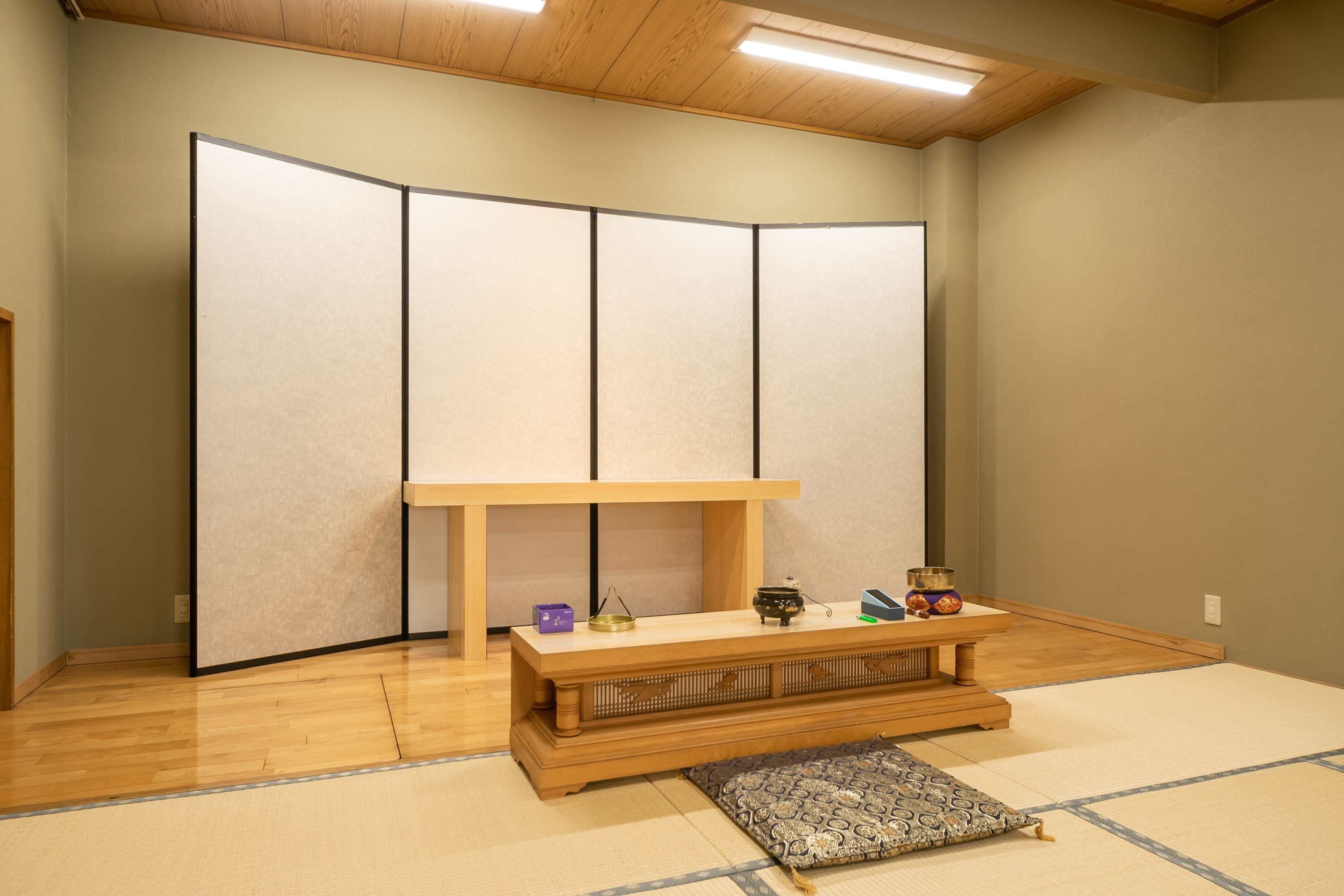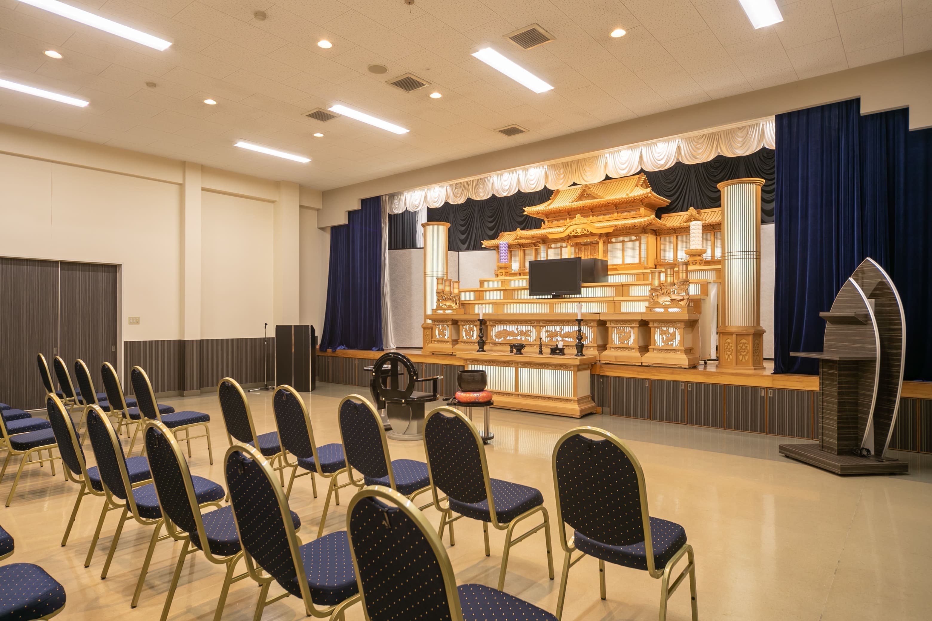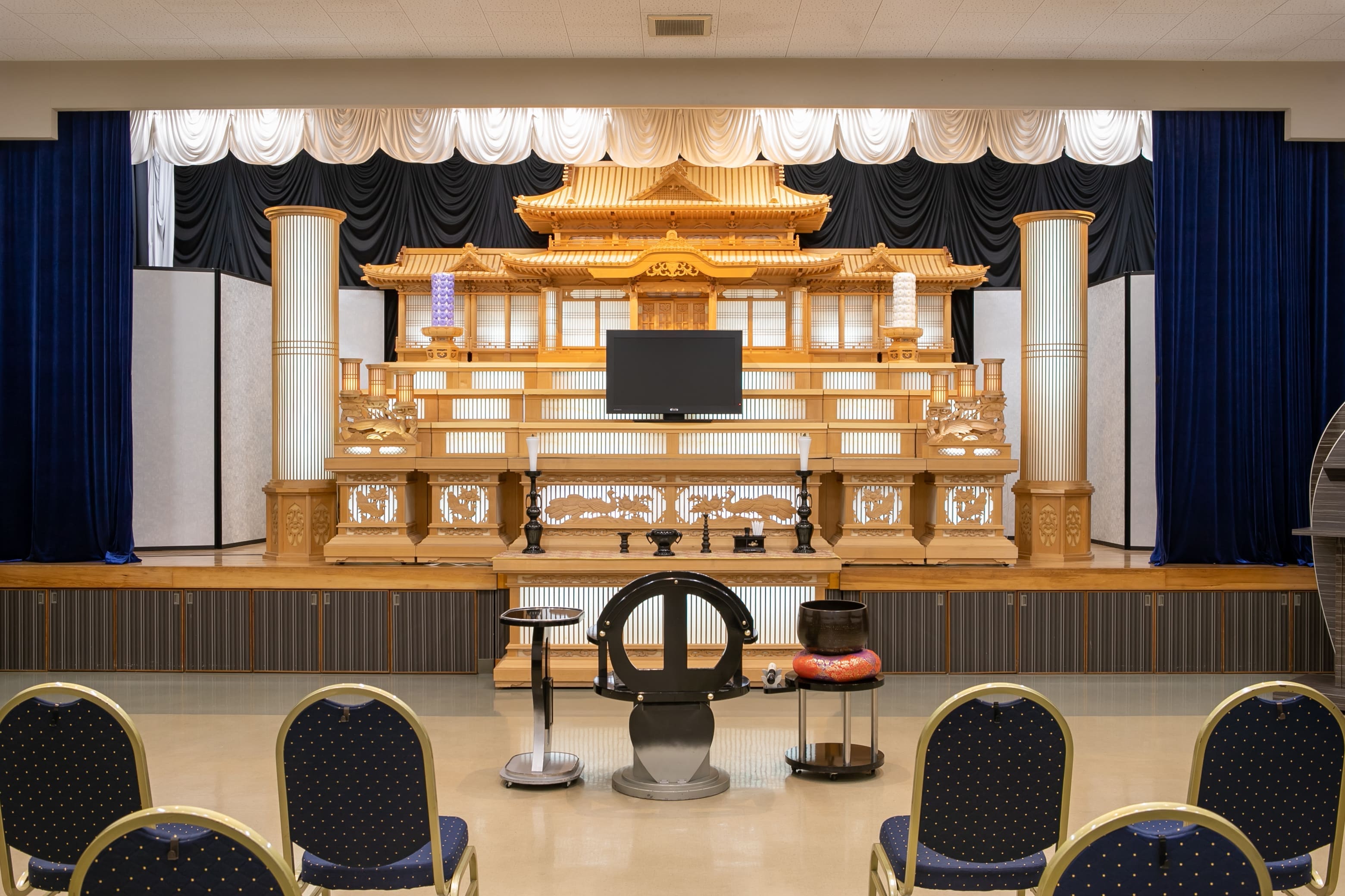 家族葬(一日葬)や、ごく親しい方々だけのご葬儀に最適なホールです。祭壇のクオリティは大ホールと同等のものをご用意しています。少人数でありながらも、感動的な演出と格式を兼ね備えたセレモニーがかないます。