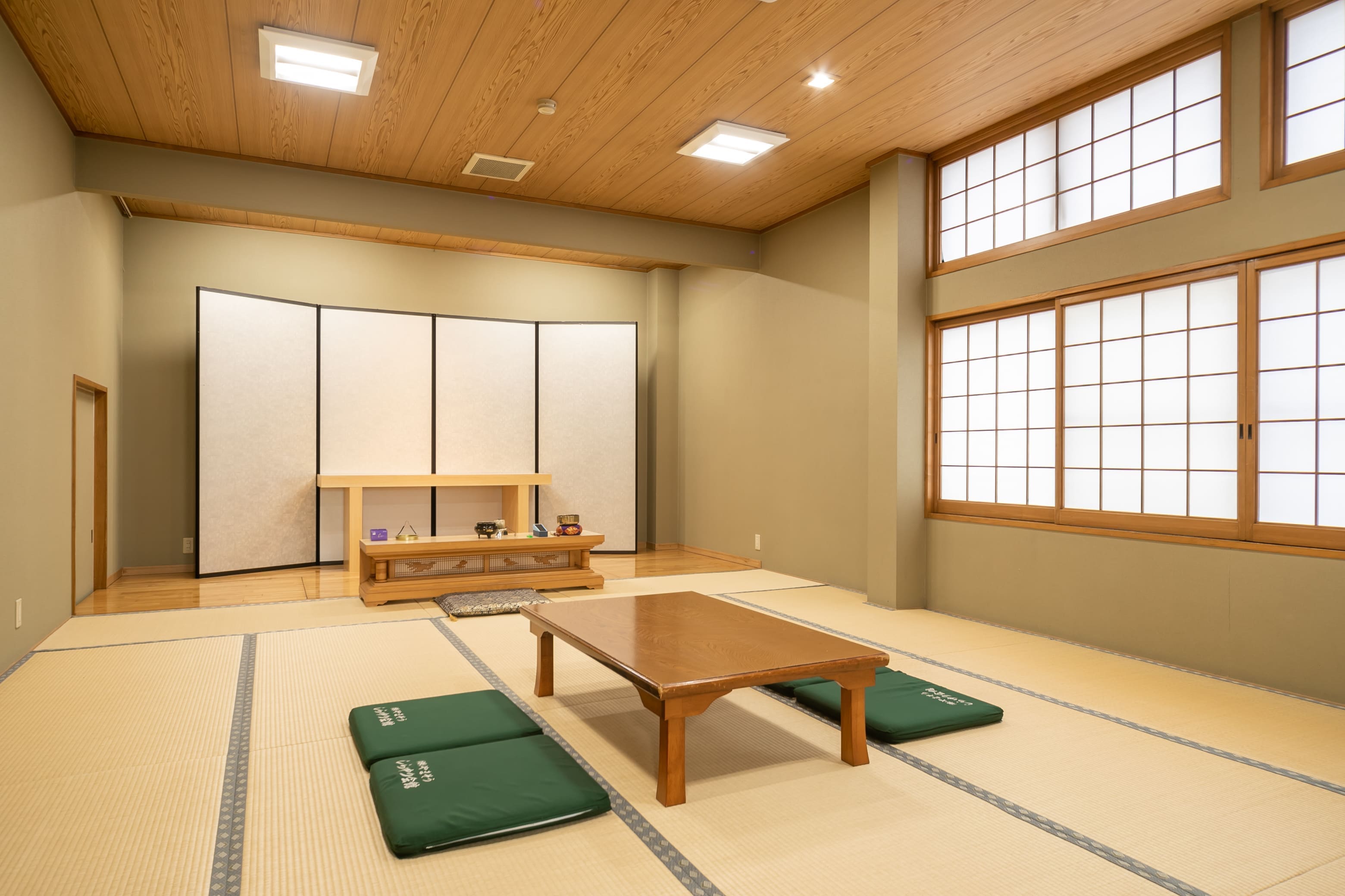 老舗の会場とは思えないほど、今なお新しさを感じさせる和モダンな空間。小上がりの控室は料亭のようなくつろぎとプライベート感を醸します。老若男女に親しまれる和室の広間で、快適な1泊2日をお過ごし頂けます。